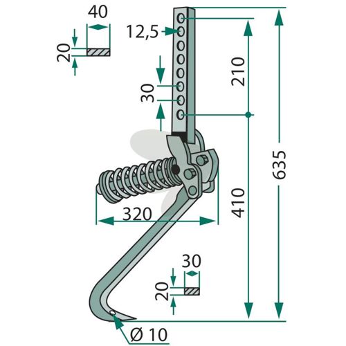 Pinn 32x10mm lengde 635mm hull 12,5/10mm