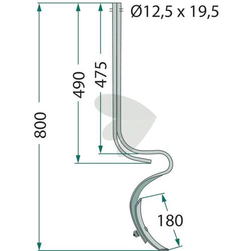 Pinne kpl. med skjær 40x10mm 800mm hull 12,5mm