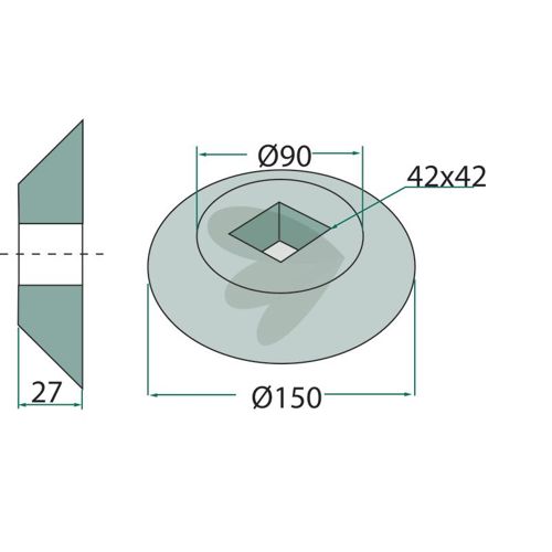 Flens Innvendig og utvendig for firkantaksel 40x40, Ø150x90