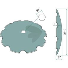 Tallerken tannet Quivogne Sekskantet hull Ø90 6mm
