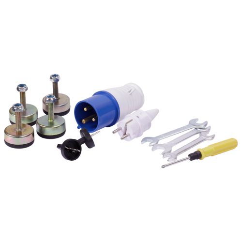 Generatoren er utstyrt med ytterligere tilbehør: Overgangskontakt 2P+PE 16 A 230 V, Overgangskontakt 2P+E 32 A 230 V, skiftenøkkel 8x10 mm, skiftenøkkel 12x14 mm, skiftenøkkel 17x19 mm, vinkelskrujern 6.0 mm, PH2.