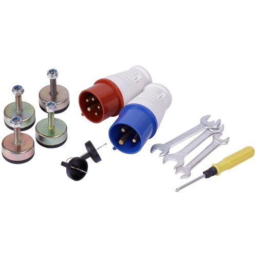 Generatoren er utstyrt med ekstra tilbehør: overgangskontakt 2P+PE 16 A 230 V, overgangskontakt 2P+E 32 A 230 V, skiftenøkkel 8x10 mm, skiftenøkkel 12x14 mm, skiftenøkkel 17x19 mm, vinkelmeisel 6.0 mm, PH2.