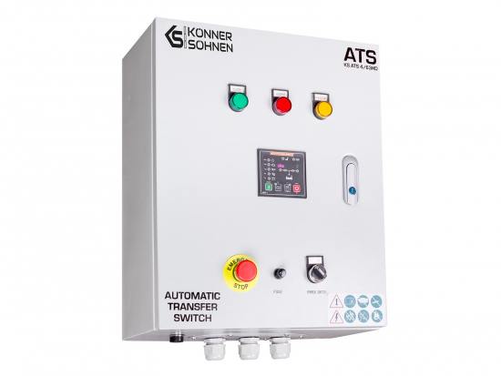 KS ATS 4/63HD ATS-enheten er egnet for en-sylindrede dieselgeneratorer fra Köner & Söhnen med ATSR-betegnelse i artikkelen, som er utstyrt med en universell 6-pinskontakt for tilkobling av automatisk overføringsbryter (ATS-inngang).