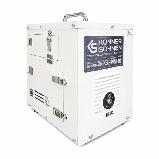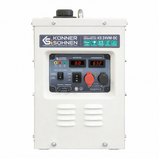 Effekt (kW): 1,6Den 60A (24–27,5V) konstantspenningsgeneratoren fra det tyske merket Könner & Söhnen® er en kraftig og pålitelig reservelader for 24V-batterier. DC-lading er svært effektiv, krever ingen ekstra spenningsomforming og sparer drivstoff sammenlignet med AC-generatorer. Den har AUTO-modus som fungerer som lader samt MANUELL/EKSTERN modus for manuell eller ekstern start. Det robuste metallkabinettet reduserer støy og beskytter mot skader. Enheten er også utstyrt med overvåkingssystem.