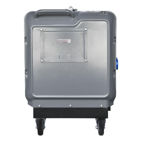 Generatorkabinettet er utstyrt med et transportsett som inkluderer 4 hjul og 2 håndtak for enkel håndtering.