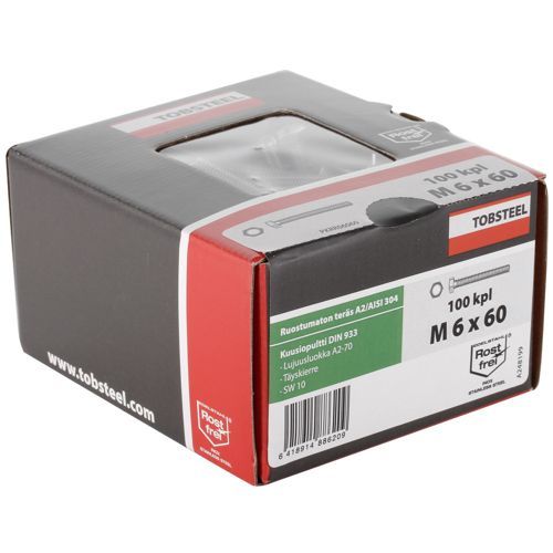 Bolt M6X60 Rf A2-70 Din933 100St Sekskants