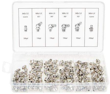 LagerstatusArtikkelnummerX008113ProdusentEgenskaperSettet inneholder 110 stk forskjellige fettkoblinger: DIN-71412
